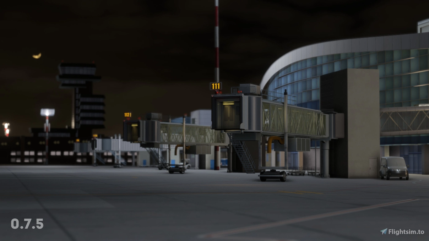 The scenery package is filled with features such as an accurate airport layout, handcrafted models of airport buildings, handcrafted aprons, and handcrafted taxiways. More features are planned, including terminal interiors.