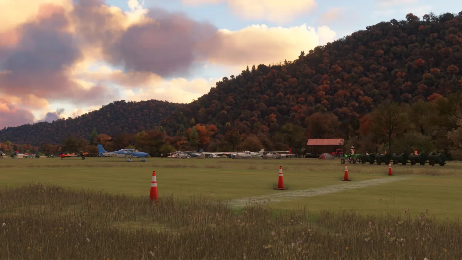 The MSFS 2024 version has been rebuilt to use the sim’s newer tech. That includes high-fidelity 3D models, enhanced textures, a custom asset library, TrailBlazer terrain shaping, dynamic fauna, and bespoke lighting and ambient sounds at the main building. The environment has also been tailored to match the region, featuring custom vegetation and autumn colours.