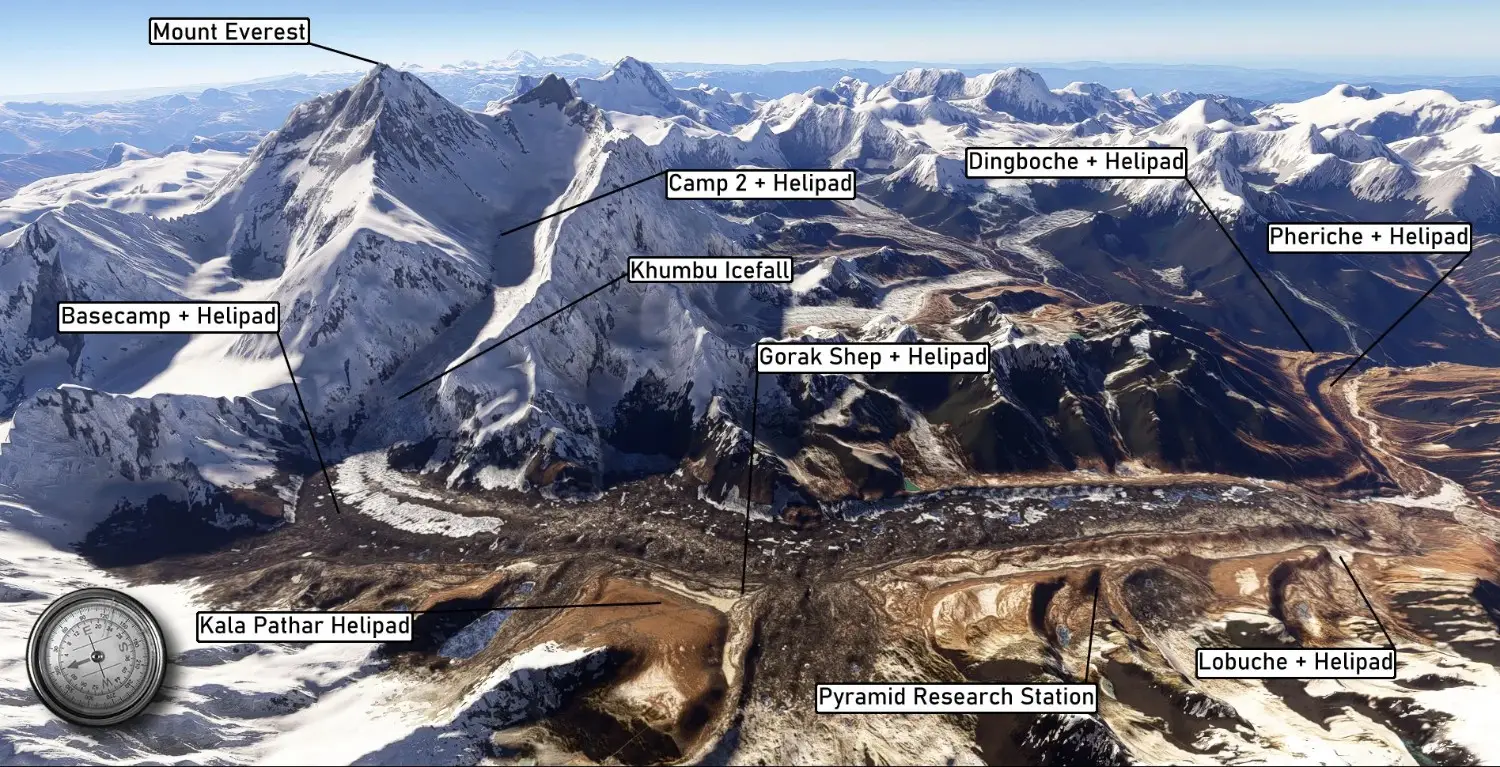 Aerosoft has placed particular emphasis on terrain and elevation accuracy, with upgraded data for the Khumbu Glacier and Icefall, improved valley terrain, and an enhanced Mount Everest summit.