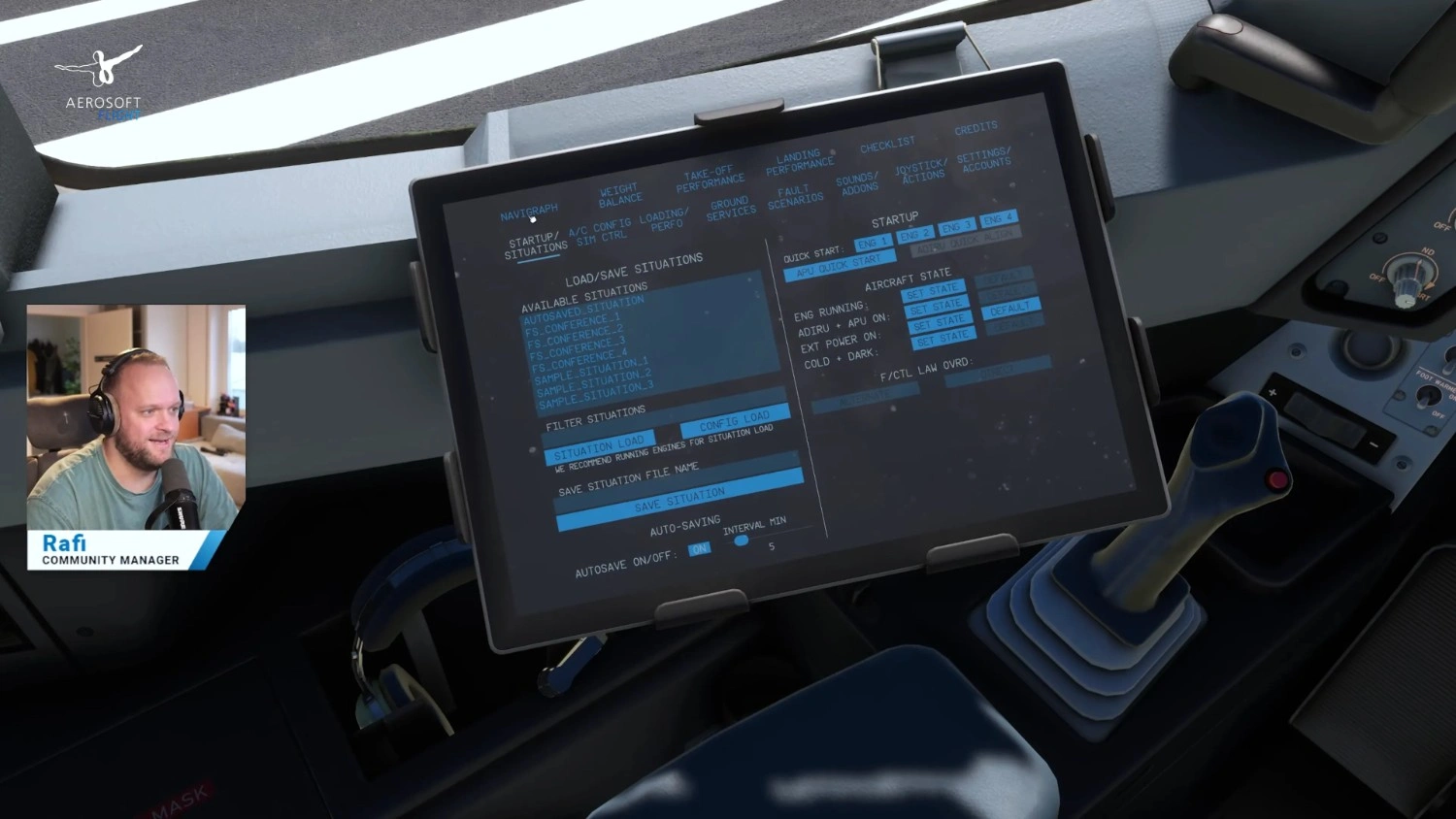 In the new video, Aerosoft community manager Rafi and ToLiss developer Torsten guide viewers through each scenario, crafted specifically to highlight various system features, rather than simply A to B (which we will see more of later!).