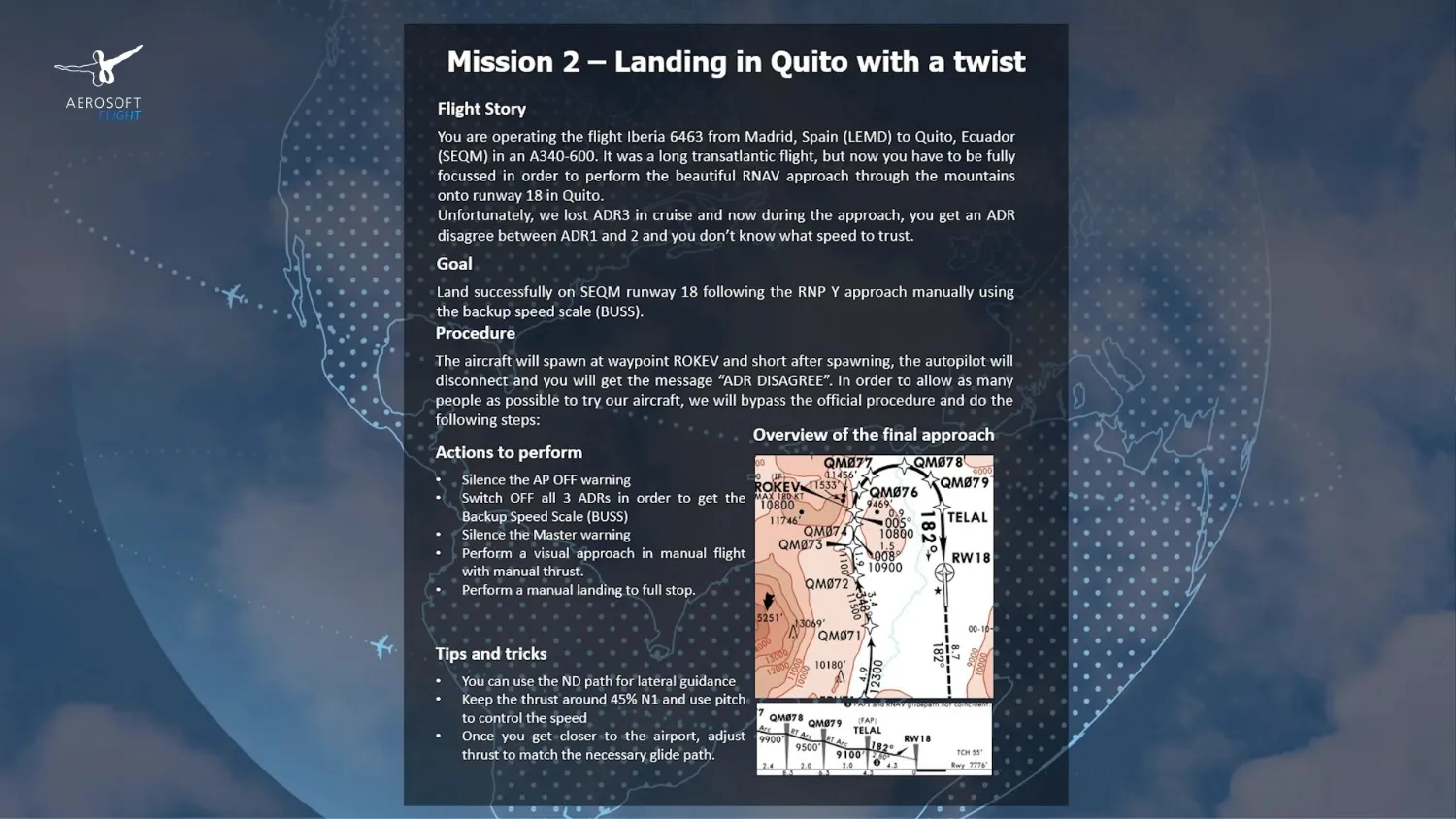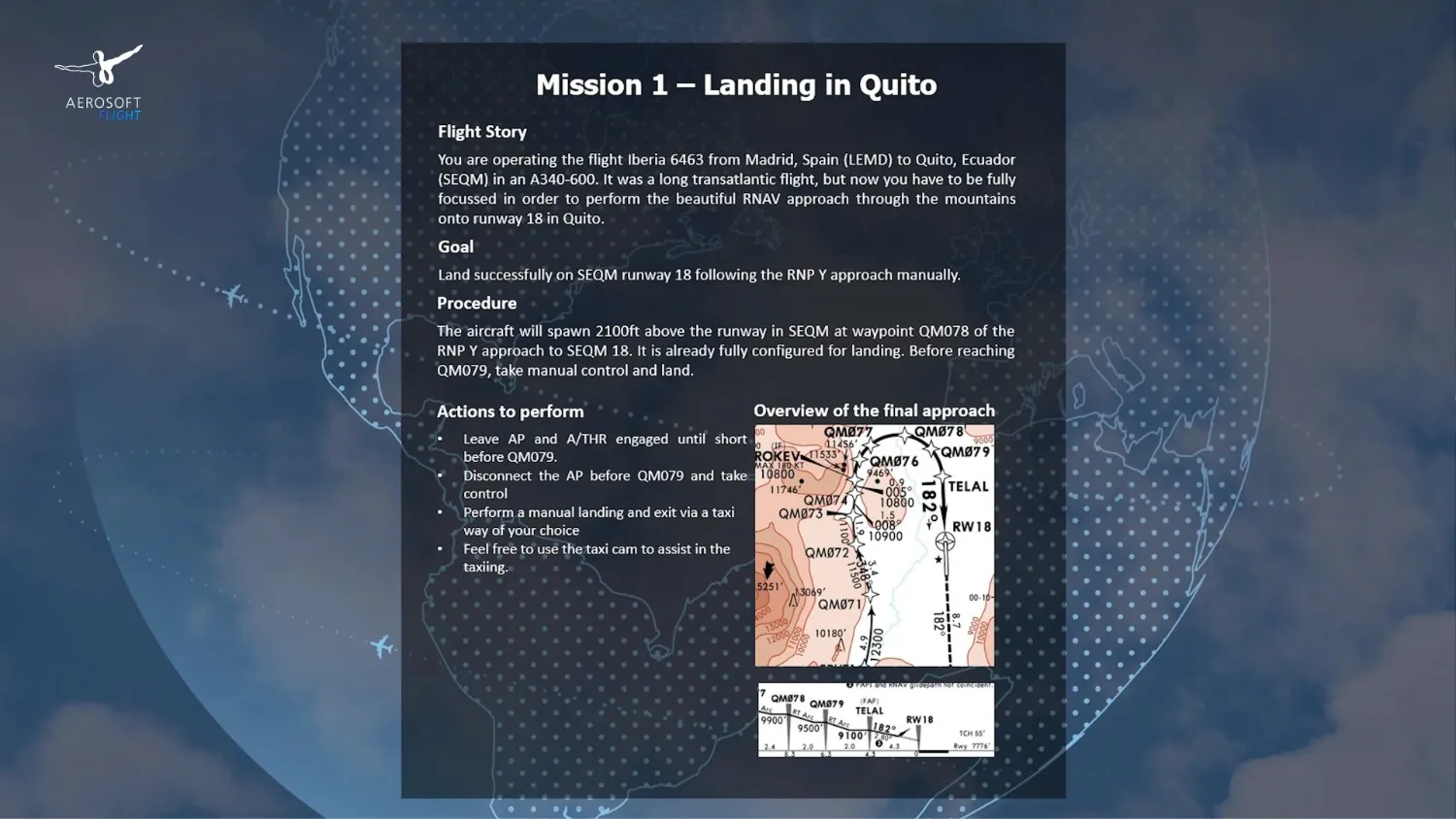 The first scenario is a “straightforward” landing into Quito, as straightforward as landings into Quito can be.