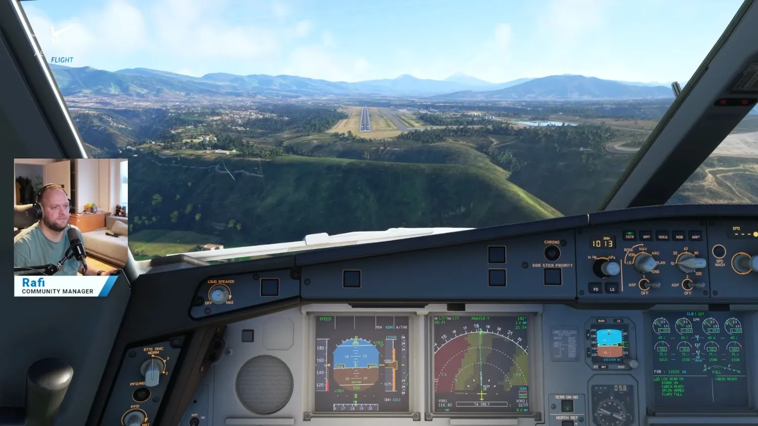 The aircraft is set up for an RNP final at around 9,000 ft, using the built-in autosave/load system. Here, there are no failures at the show, though the thin air and higher ground speed at Quito still make for a challenge.