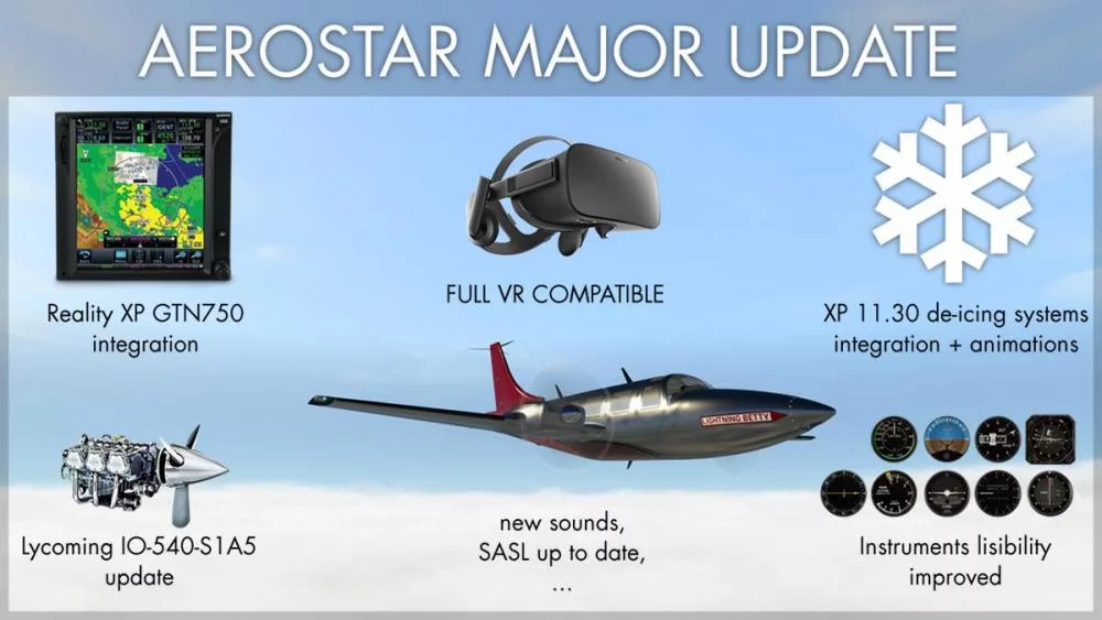 Avia71 took it upon themselves to develop the Aerostar for X-Plane and it has now been updated to feature full compatibility with VR and the RealityXP GTN750. The update also brings the Aerostar up to X-Plane 11.30 standard, with new de-icing systems being the main benefit of this.