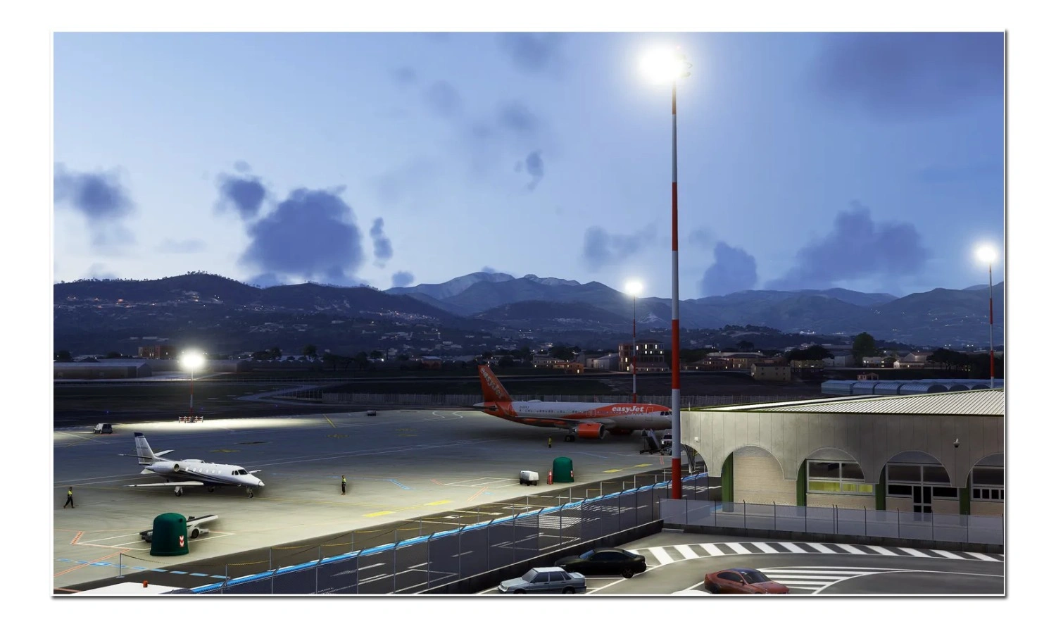 Set just short of 25 miles south-east of Naples, Salerno sits between sea and foothills, which shapes both the approaches and the kind of flying it invites. The real-world runway has been extended to around 1,600 metres, and the scenery reflects that updated layout, opening the door to everything from general aviation to smaller airliners. Arrivals over the shoreline are framed by rising terrain, while departures quickly put Mount Vesuvius, the Amalfi Coast, and the Bay of Naples within easy reach.