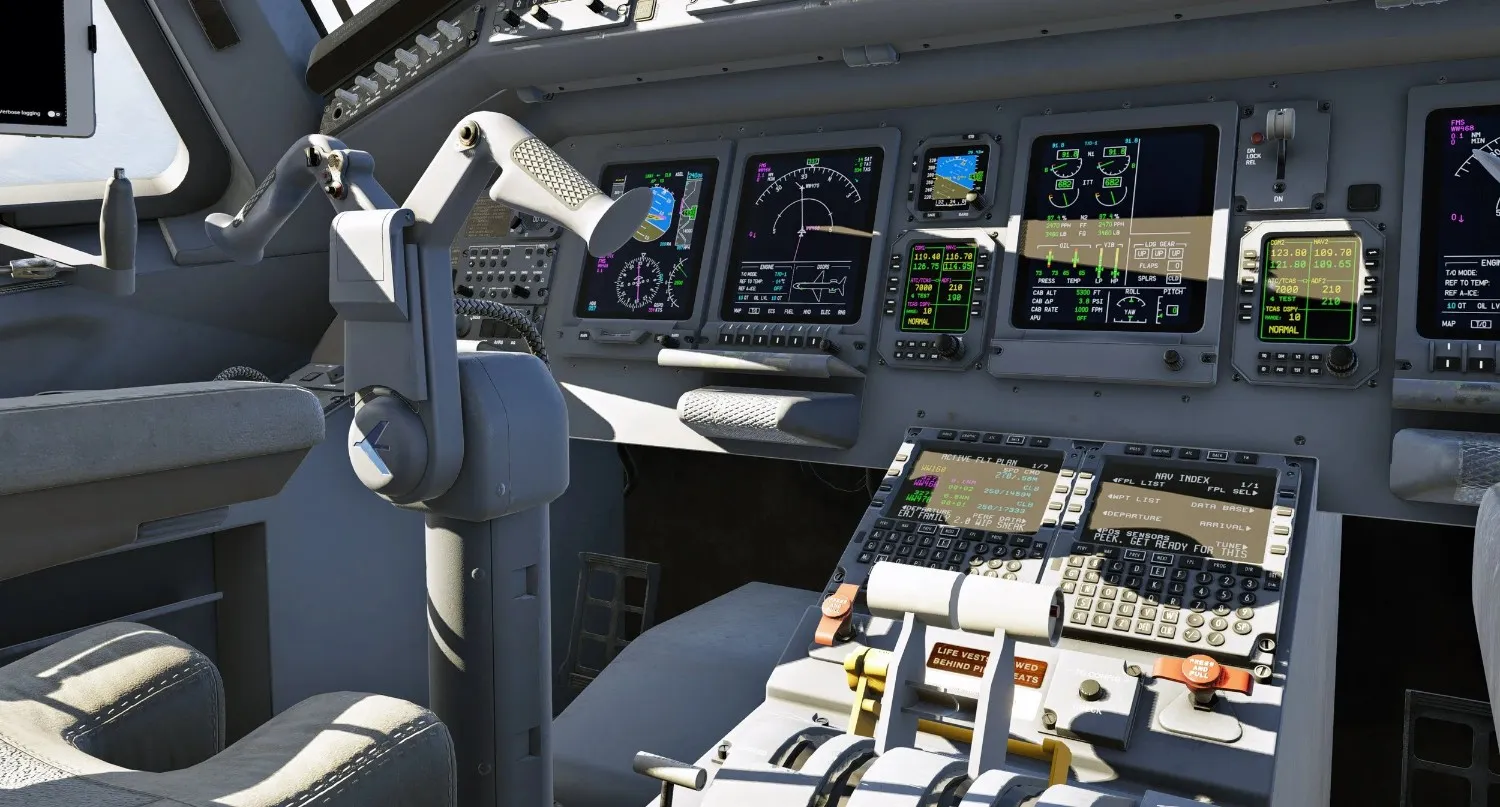 The previews highlight extensive modelling work across the flight deck, with detailed views of the yoke, overhead panel, autopilot mode control panel, and the electronic flight bag, amongst others. We also see the redesigned primary and multi-function displays, a brand-new FMS, and new pop-up functionality for improved usability.