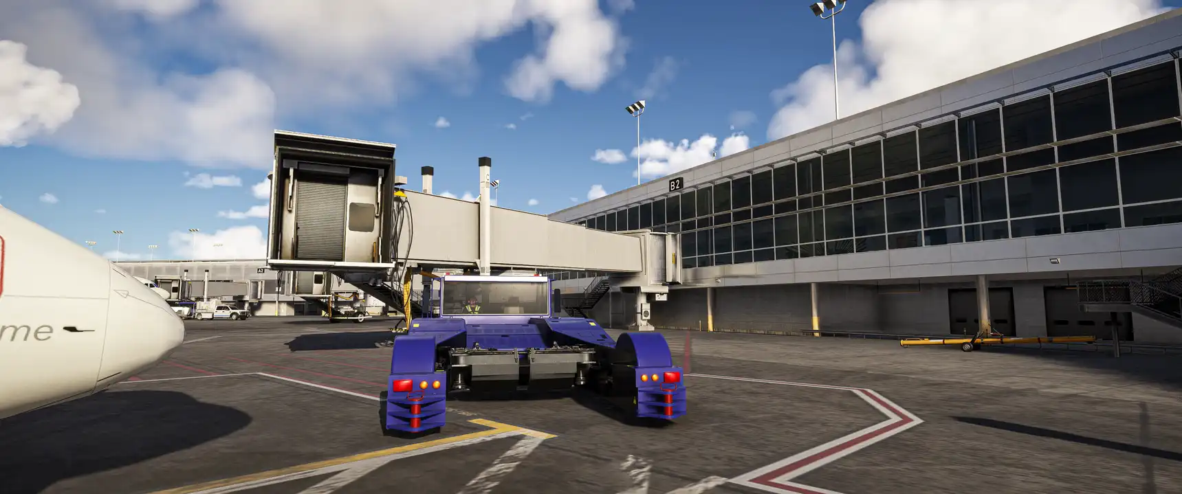 The scenery features an accurate rendition of the airport, with custom ground textures, an up-to-date ground layout, custom jetways, accurate taxiways, custom PBR texturing, performance-friendly optimization, custom night lighting, and much more.