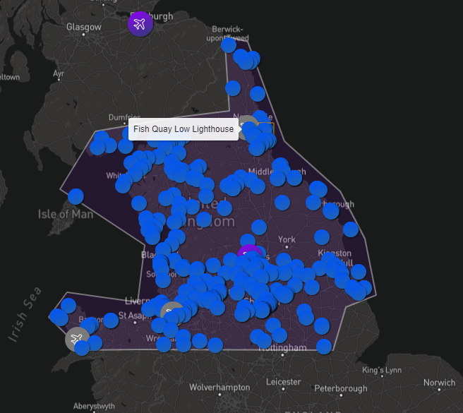 Great Britain Central features around 500 hand placed and custom Points of Interest. These include stadiums, castles, bridges and churches amongst more. Alongside this, they have placed many generic objects such as containers and boats across the entire coverage area. The image below presents the sheer volume of locations included with this release.