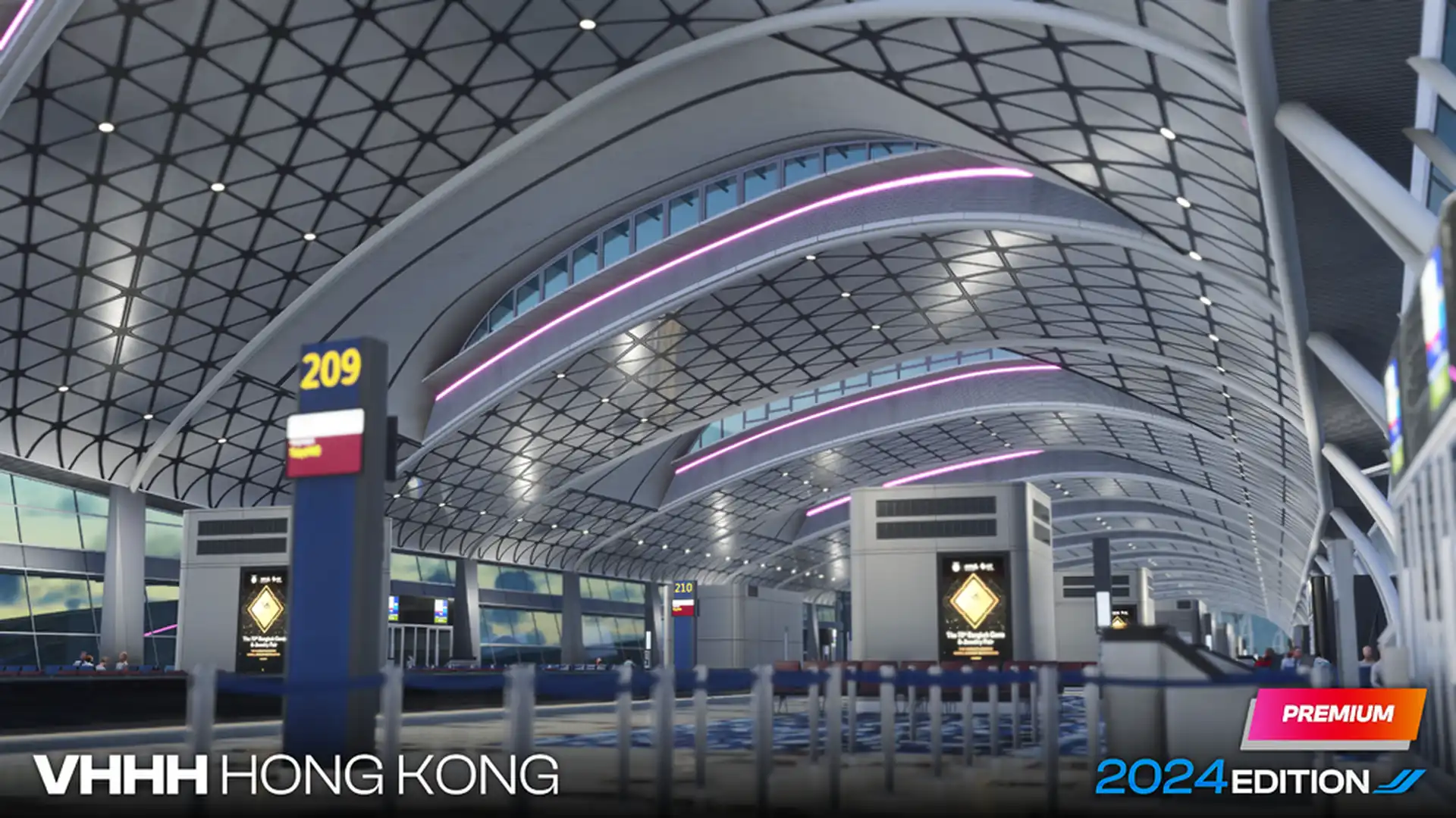 The scenery will feature an up-to-date ground layout, true-to-life landside, handcrafted ground textures, custom jetways, highly detailed terminals, performance-optimized performance, custom night lighting, and a Point of Interest pack for Hong Kong landmarks.