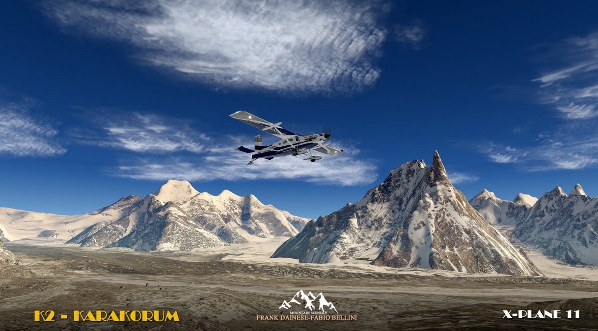 The renowned mountain park developers Frank Dainese and Fabio Bellini have just released their latest mesh pack for X-Plane 11, a rendition of K2 and Karakorum.