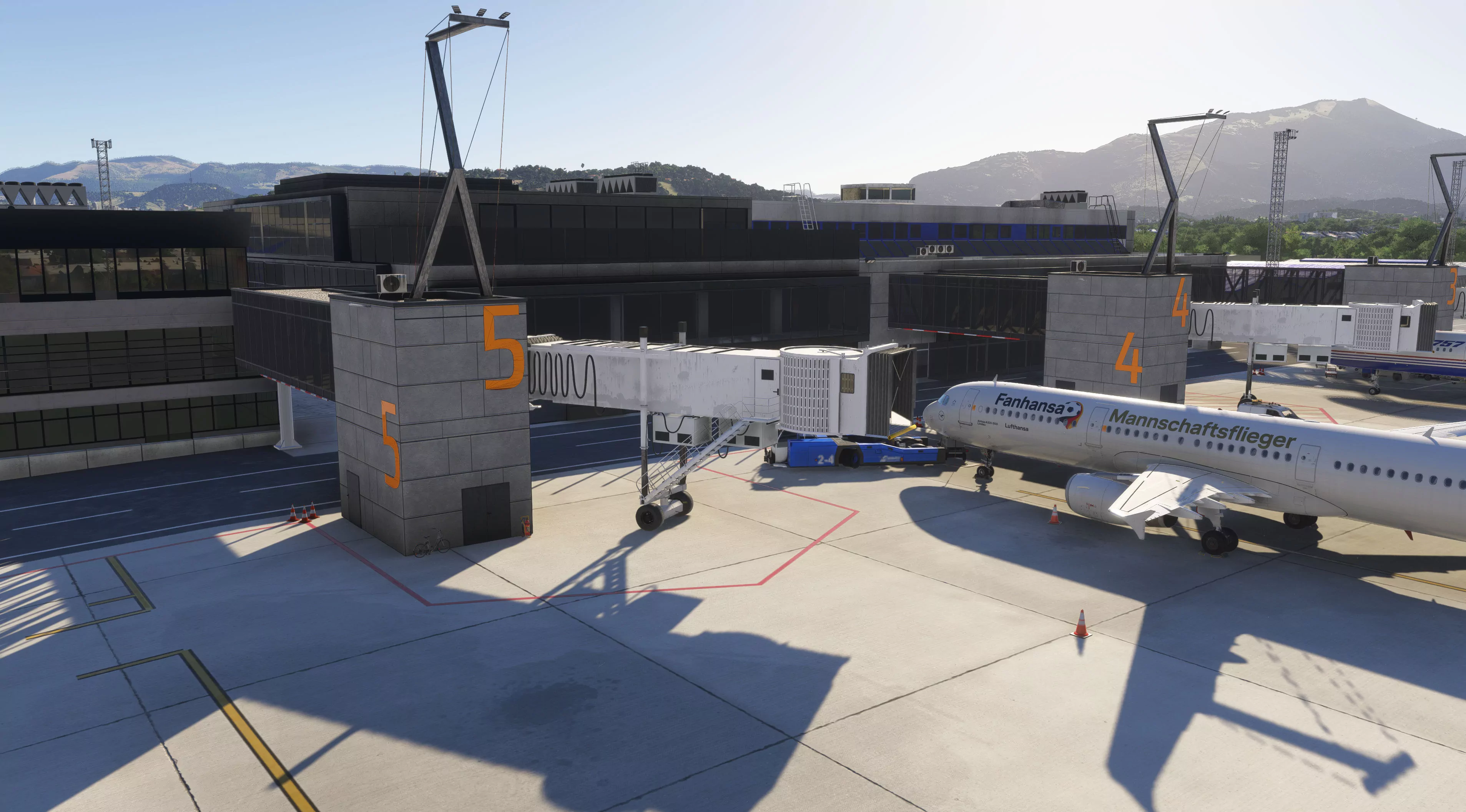 The scenery features an accurate rendition of the airport, including the new terminal extension, a custom runway profile, a real-world ILS profile, custom-made ground textures, an up-to-date ground layout, runway weathering, and more.