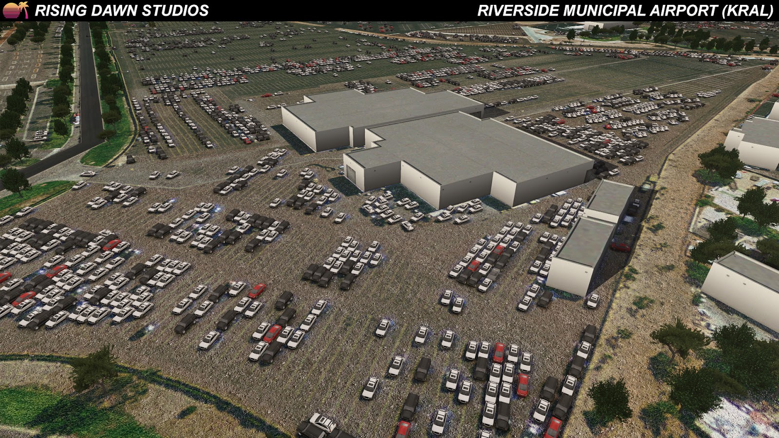 Rising Dawn Studios (RD Studios) has posted more previews of his upcoming Riverside Municipal Airport (KRAL). The project was initially announced two years ago, in early September of 2017. Since then, sole developer Peter Suranyi has pushed the project to its current state, with a Los Angeles landmark pack now bundled in, as well as innumerable additional textures, buildings, and other improvements (He even added a time machine!).