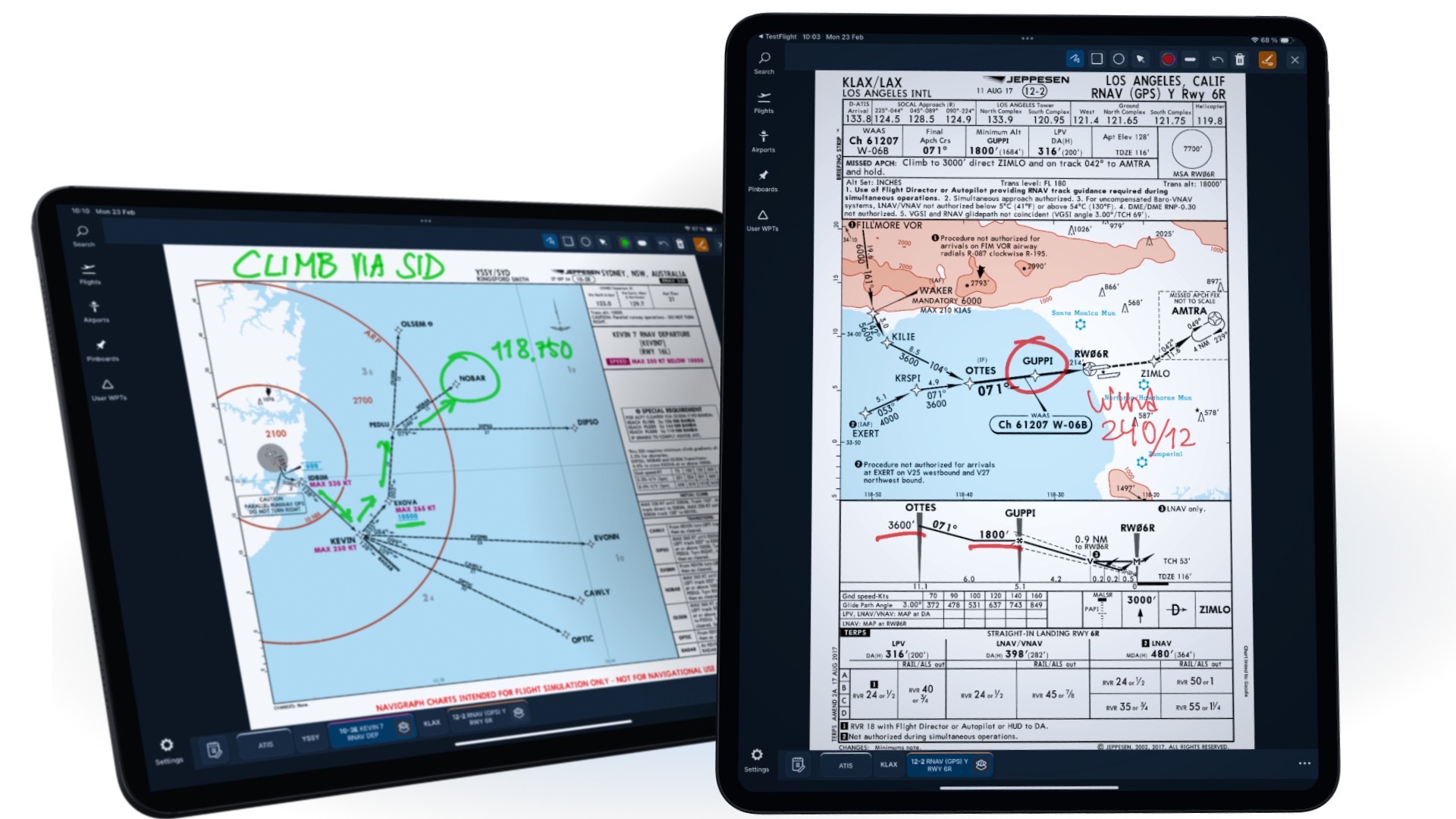 With annotations, users can now draw directly on Jeppesen charts and SimBrief operational flight plans. The application supports freehand drawings, as well as simple shapes, to help in highlighting essential information on charts for your flights.