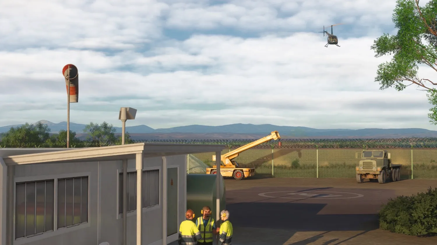 The package features two short runways, a 984-foot gravel strip and a 1,043-foot dirt strip, alongside a private hangar, solar-powered runway lighting, and an asphalt helipad. Approach paths are intentionally challenging, with cliffs, gates, and nearby power lines requiring some carefulness when committing to landing. Dynamic wildlife, hand-modelled vegetation, and Parallel 42’s TrailBlazer terrain technology are also used.