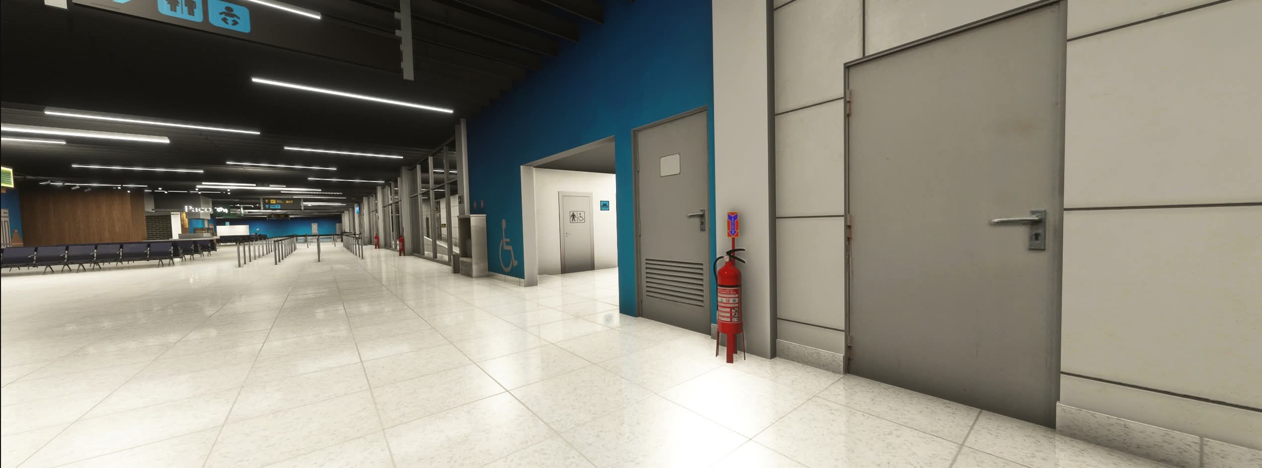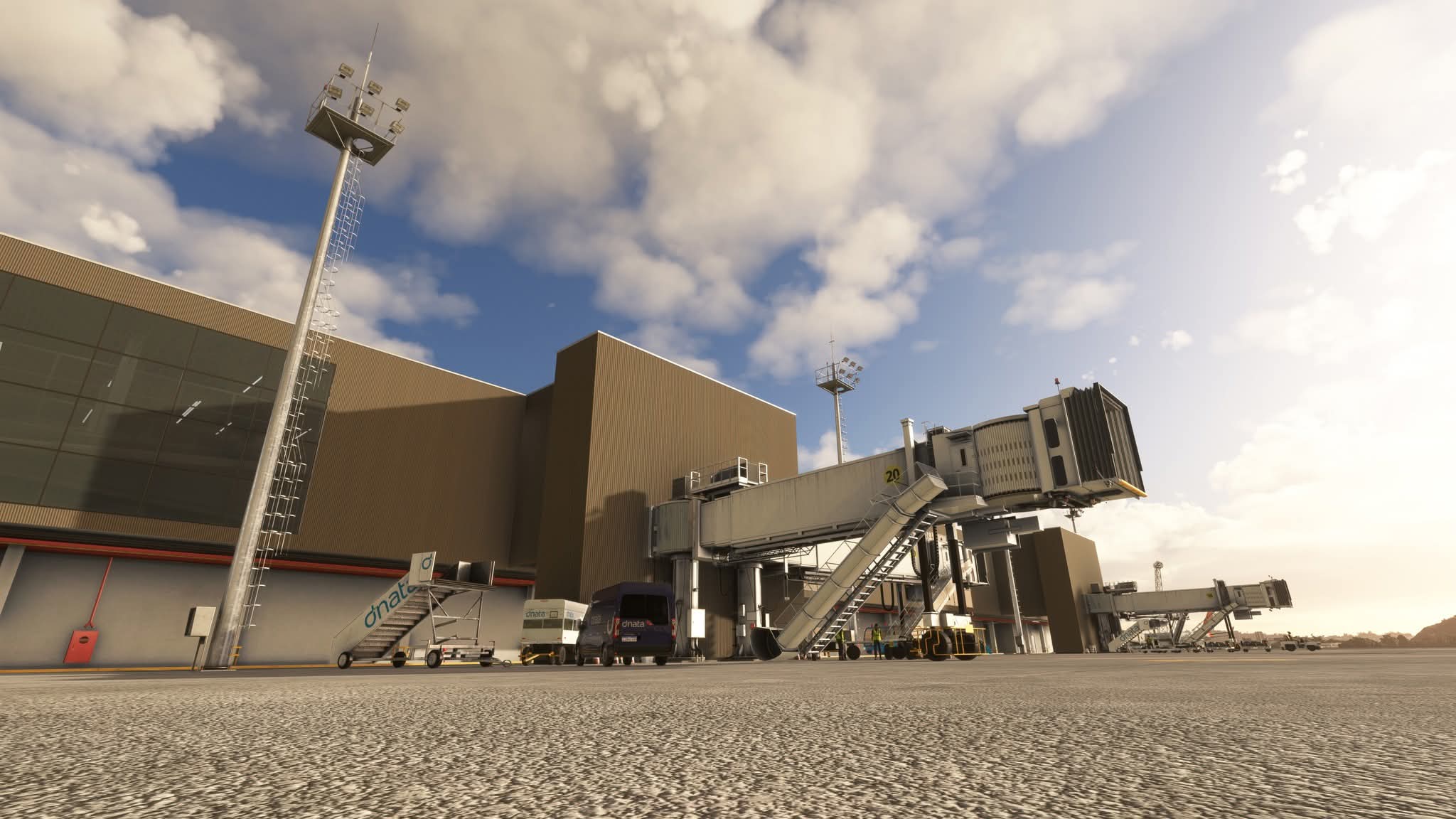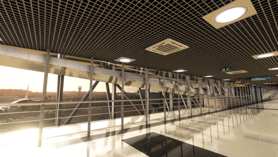 The scenery features an accurate rendition of the airport, with custom ground textures, a highly detailed passenger terminal with a partially modeled interior, city landmarks, an up-to-date ground layout, and much more.