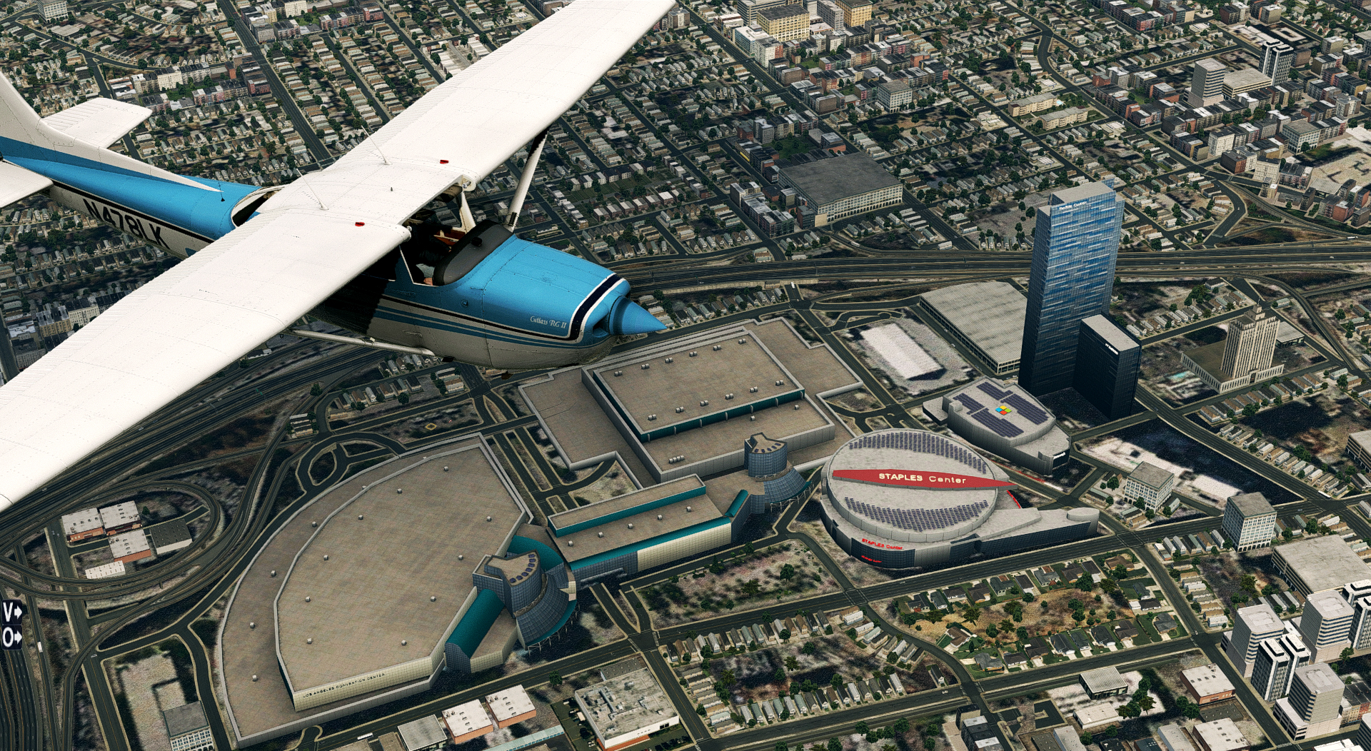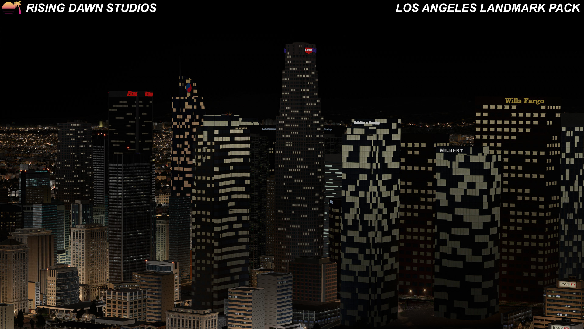 In numerous posts on the development thread over on the X-Plane.org Forum, Suranyi, under the alias Susu986, showcases work done to the aforementioned "environment buildings", as well as some new shots of the Los Angeles VFR landmarks pack at distance, showing that these objects don't "fade out" from distances they should clearly be visible at.