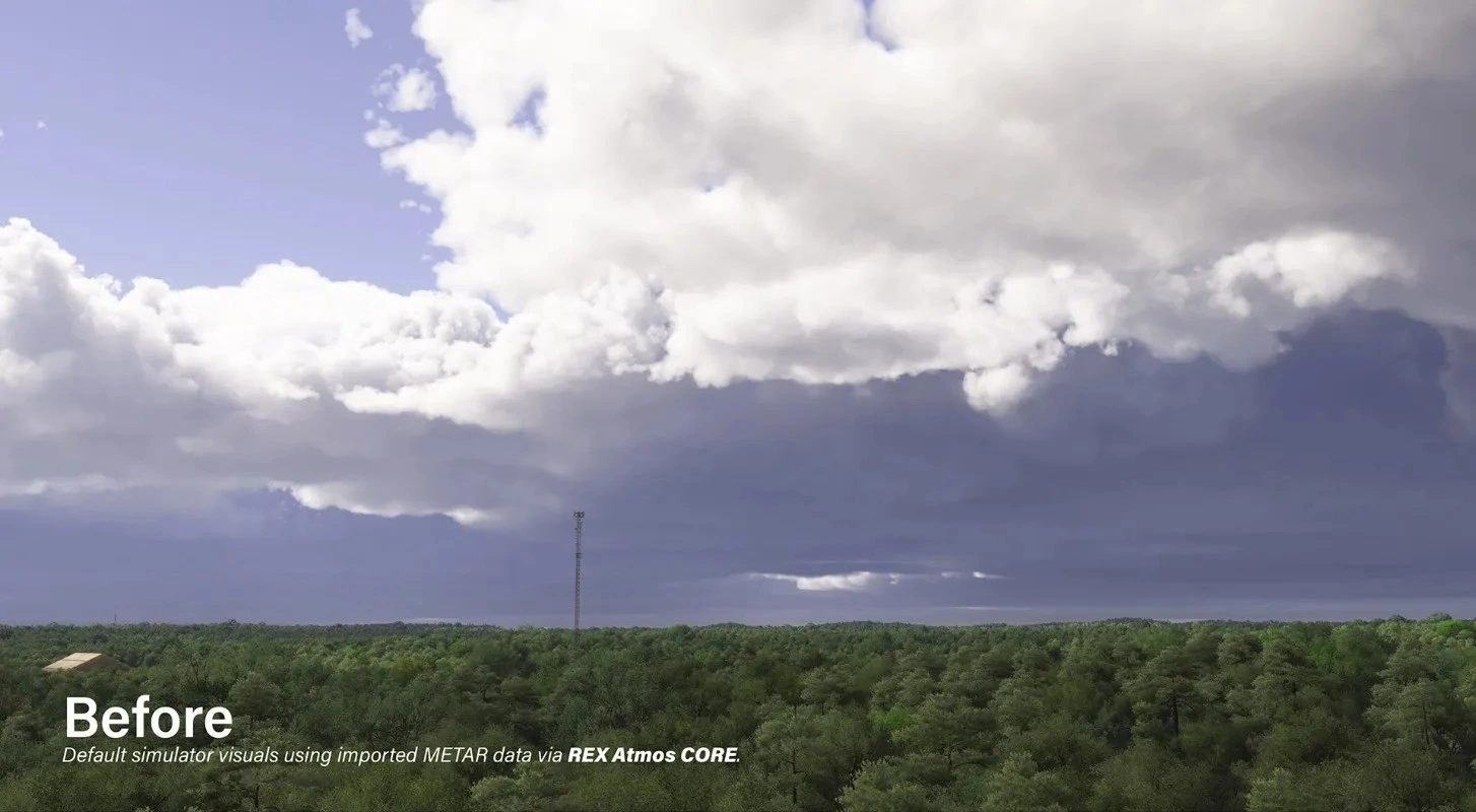 Atmos CORE enables real-time adjustments of weather, atmospheric rendering, and environmental conditions. According to REX, Atmos CORE will integrate seamlessly with Asobo Live Weather, ActiveSky FS, and other custom or imported weather presets, without interfering with existing simulator files. Improvements over default include more realistic ozone levels, cloud colour accuracy, shader appearance, cloud lighting, Rayleigh scattering, and atmospheric blending.