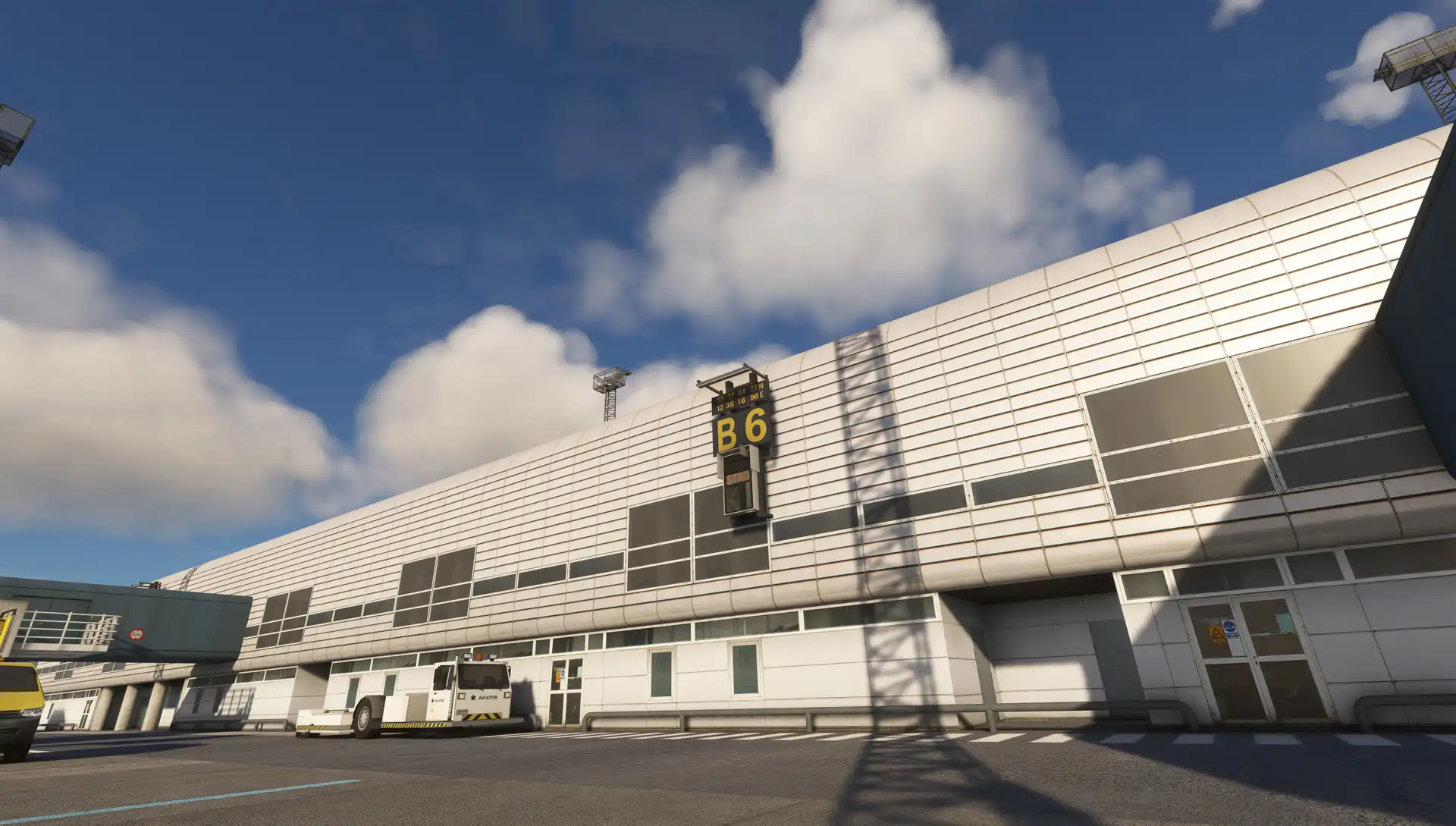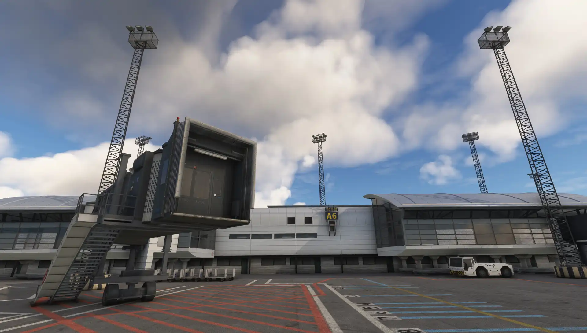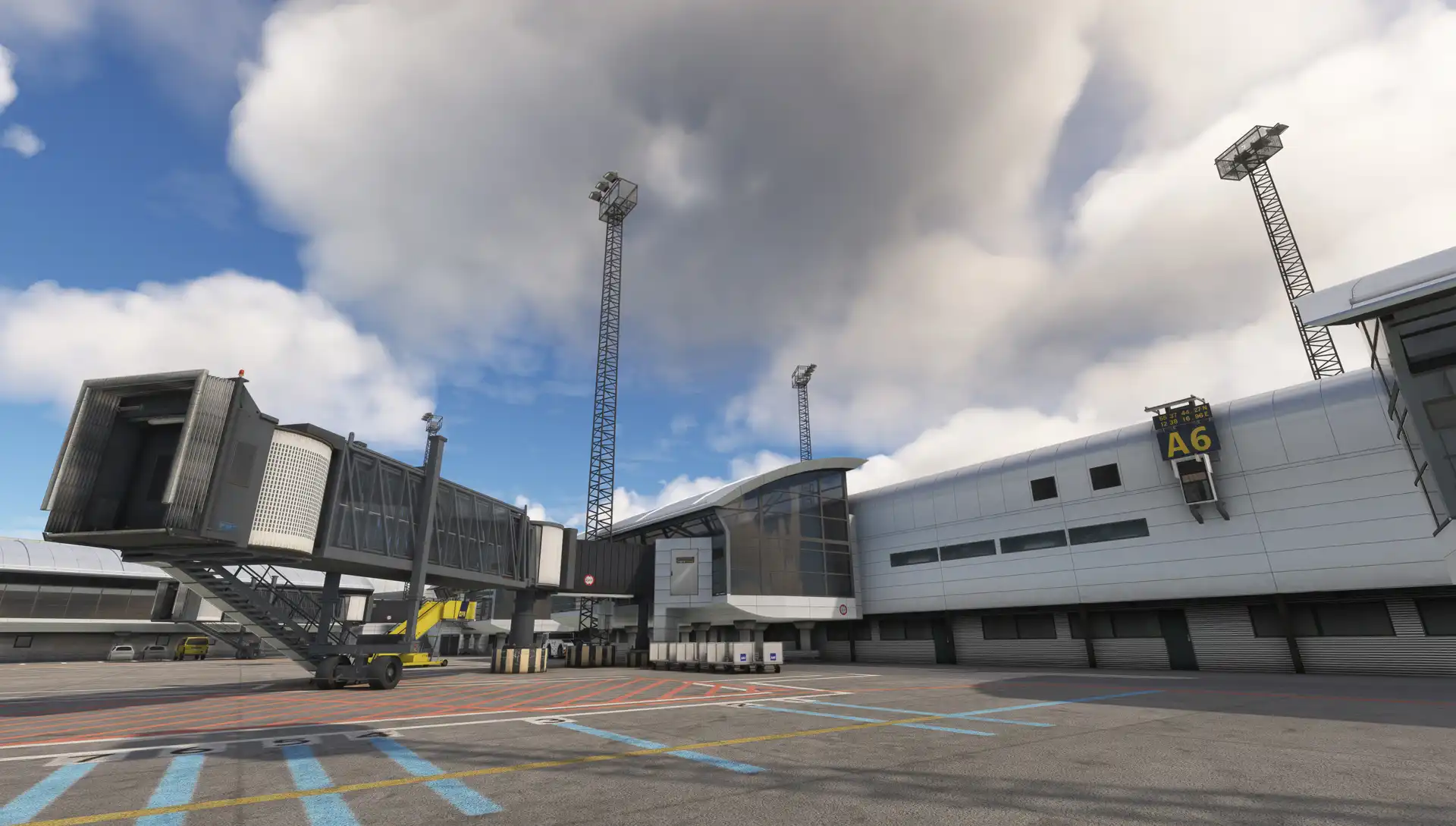 The scenery features an accurate rendition of the airport, with custom ground textures, custom jetways, custom ground poly, detailed buildings, custom aerial imagery, and more.