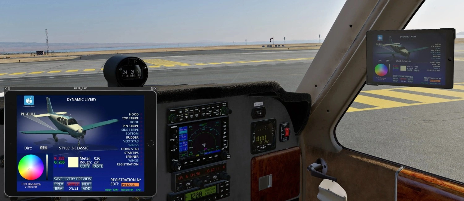 - Dynamic livery editor (like in the Kodiak, the Beaver, the Wilga, the Islander, the C337, the C172, the C206, the C208 Caravan, the Pilatus PC-6, and the Pilatus PC-12)