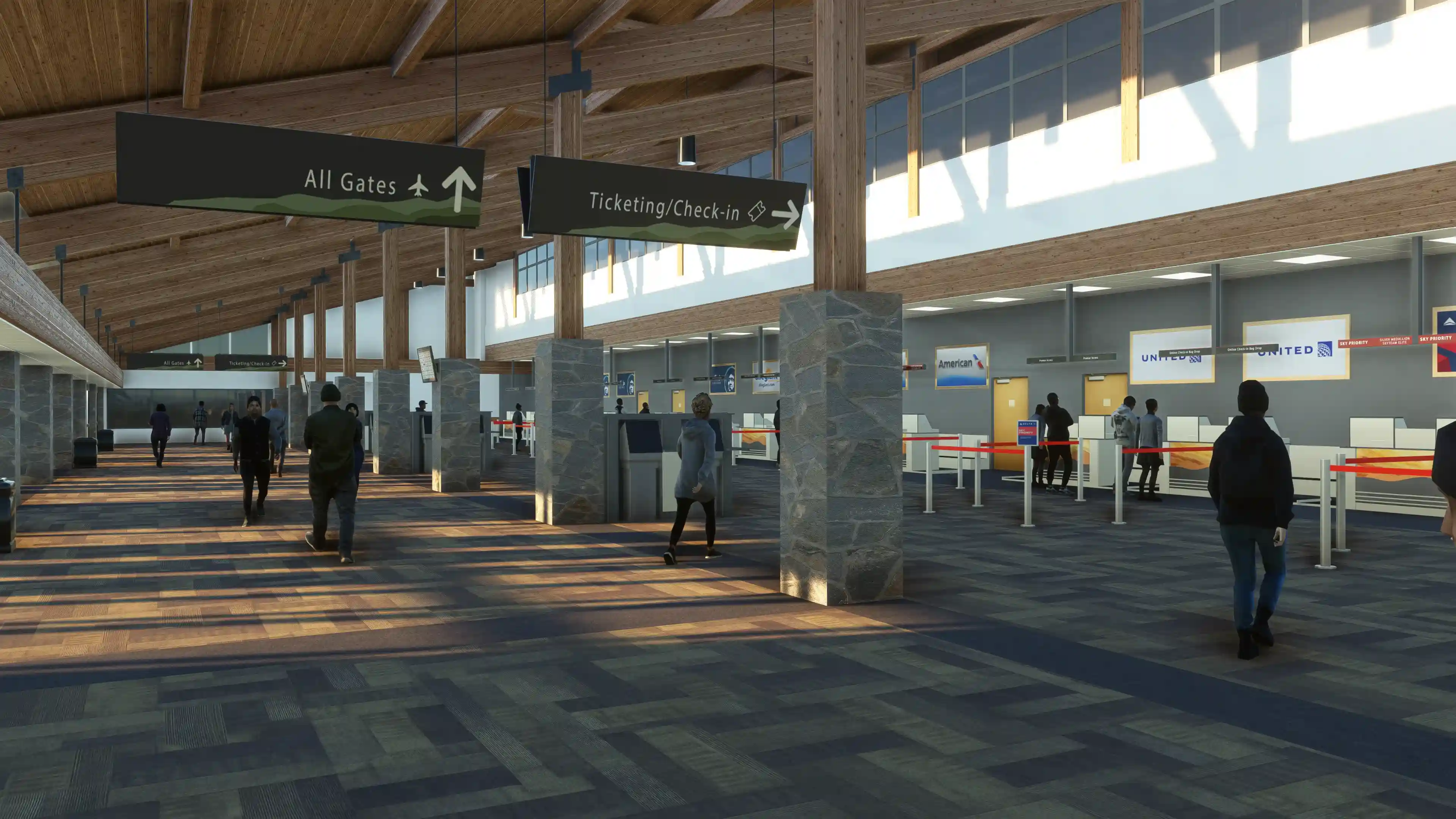 TaiModels’ rendition of Bozeman Yellowstone International Airport comes with features such as PBR ground markings and textures, detailed terminal interiors, accurate airport lighting, taxiways, and aprons, and much more.