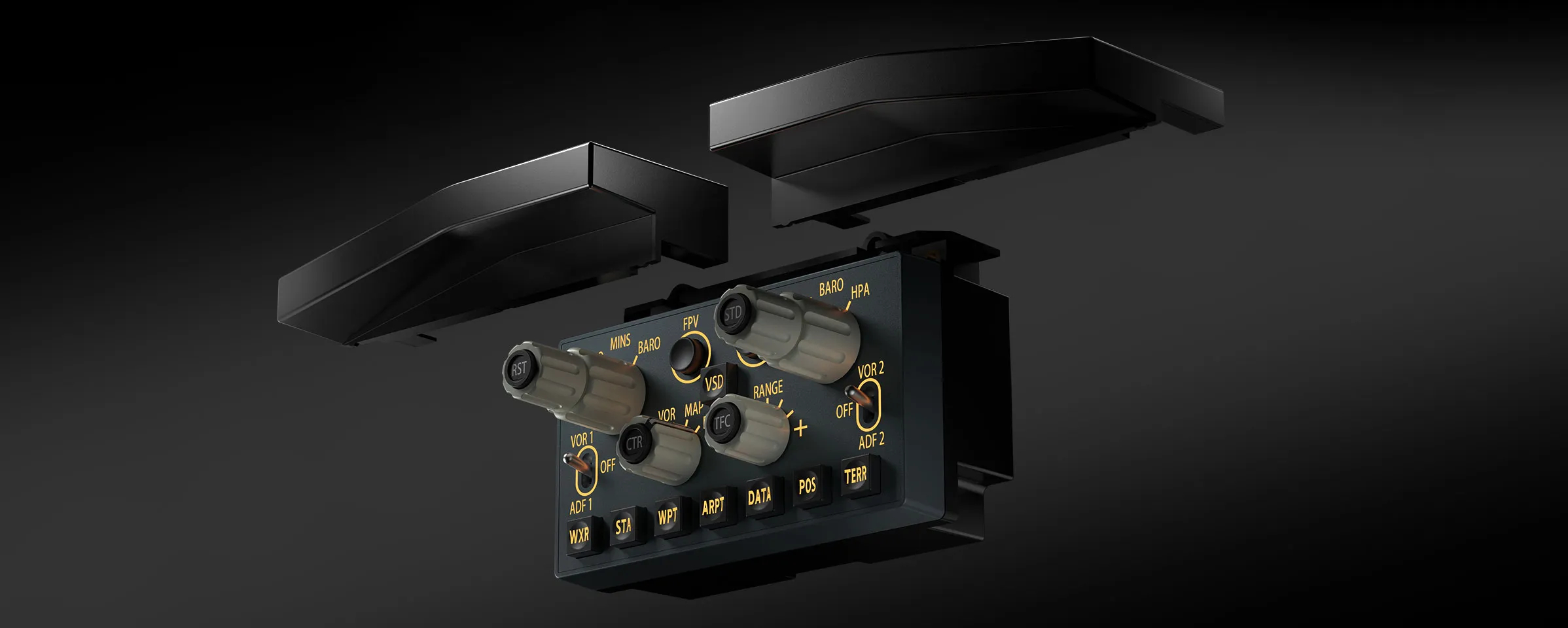 You’ll get full-structure moulded faces, with sharp 3D detailing, individual switches for MINS RST, BARO STD, CTR, and TFC, plus authentic auto-reset logic on MINS and BARO selectors. Each unit connects over its own USB and can be used standalone, paired together NG/MAX, or integrated with the PAP3 autopilot panel, for a complete Boeing-style glareshield.