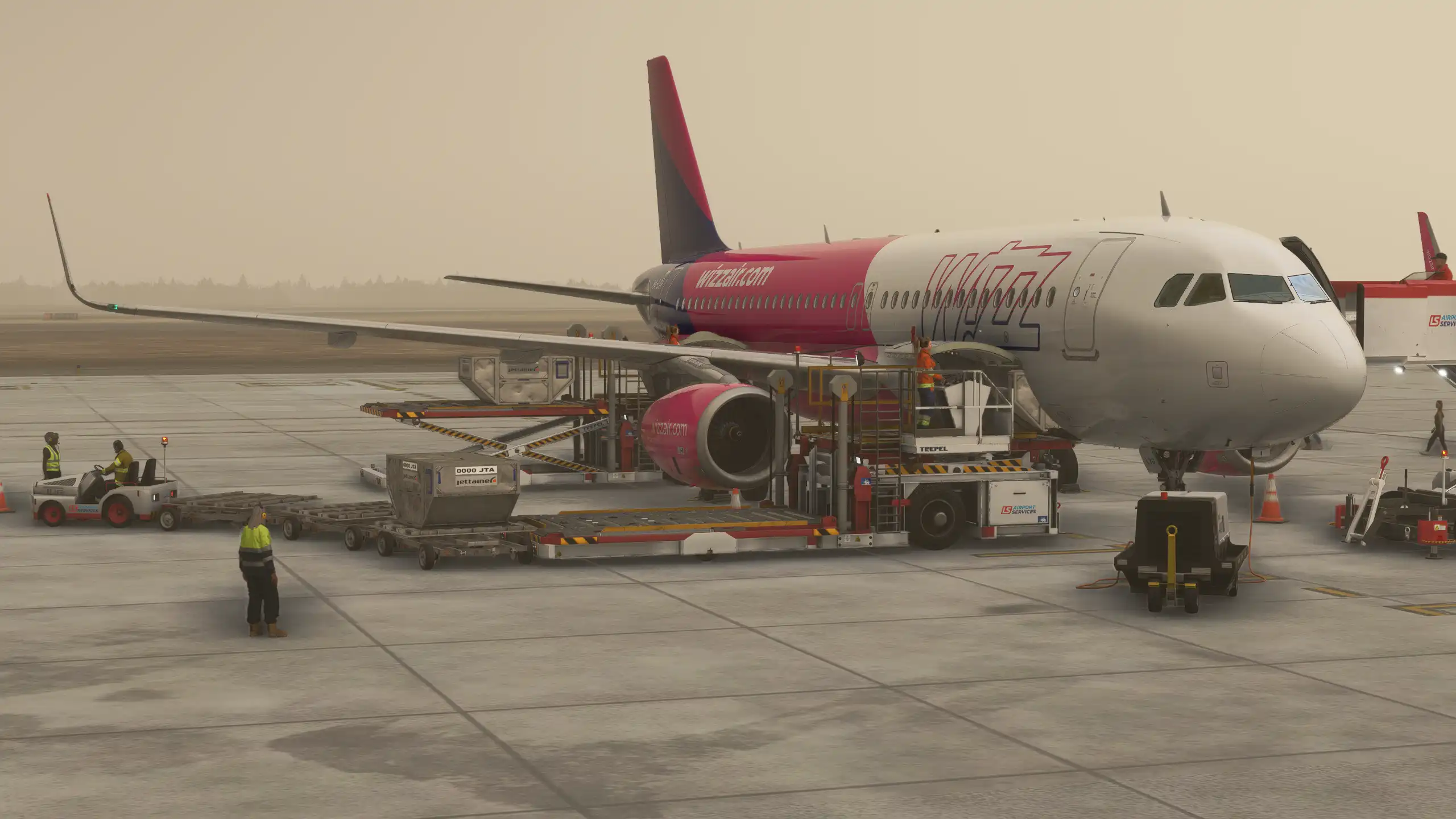 Fate or not, the route of choice was a bit more than an hour-long flight from Dortmund, one of the few cases where Wizz still deploys the A320 on occasion (everything else is A21N). It went on without a single hitch up until the final approach: the weather couldn’t be any worse, with the runway lights only becoming fully visible after the last few hundred feet, and there was thick fog everywhere. While I generally do not mind this type of weather, it does bother me a bit when I’m doing a review flight, since I like taking screenshots with live weather on, and this kind of visibility doesn’t do the scenery any justice at all (I had to disable live weather eventually).