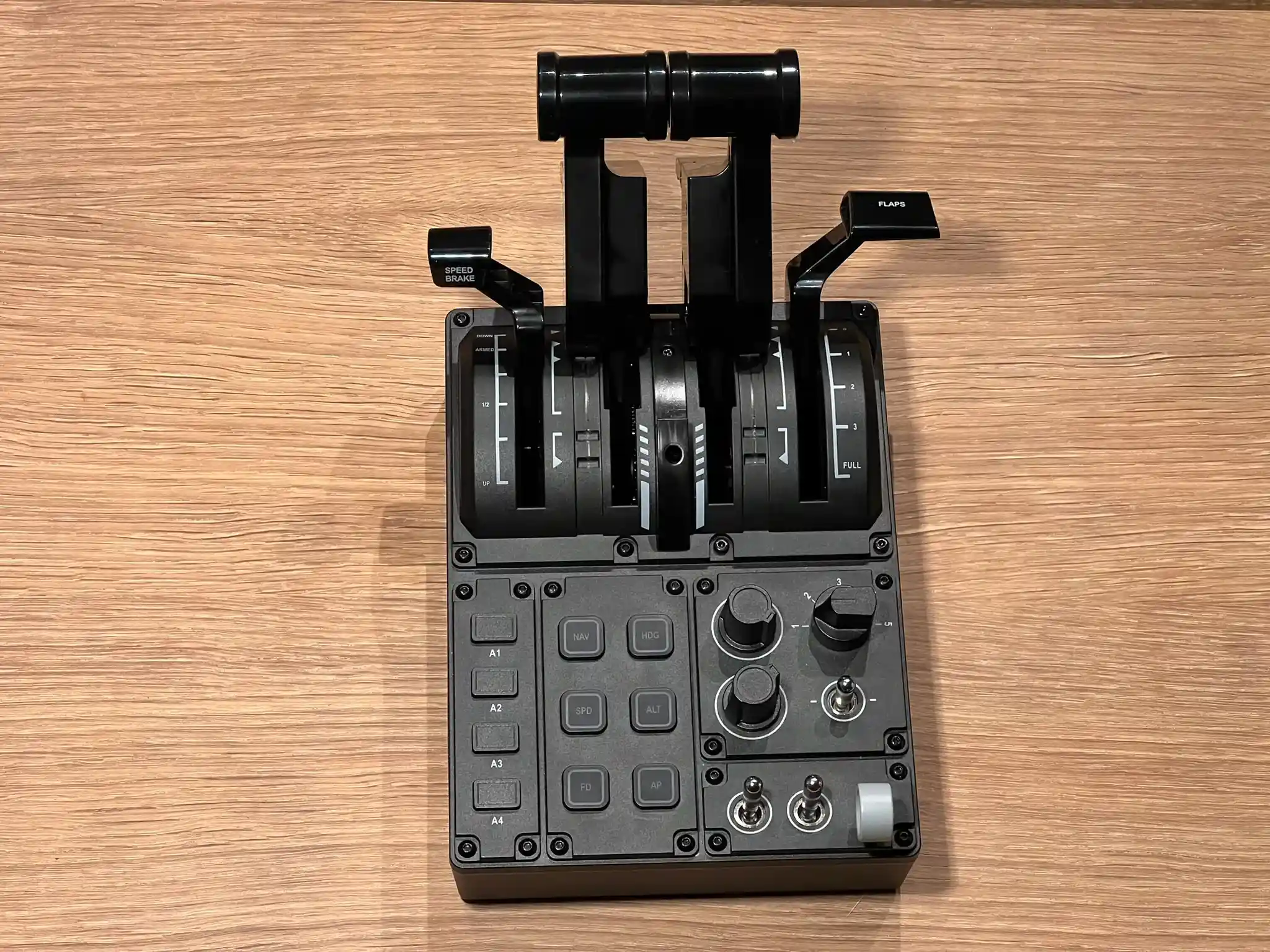 There is one significant issue with the base: it is too lightweight. Actions such as quickly moving the throttle levers, switching between detents on the thrust quadrant (TQA), and especially pulling out of reverse thrust on both the TQA and the included throttle handles can cause the base to lift off the surface.