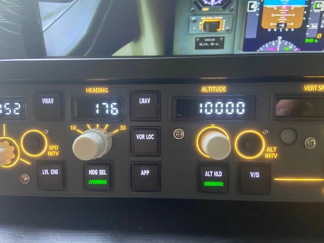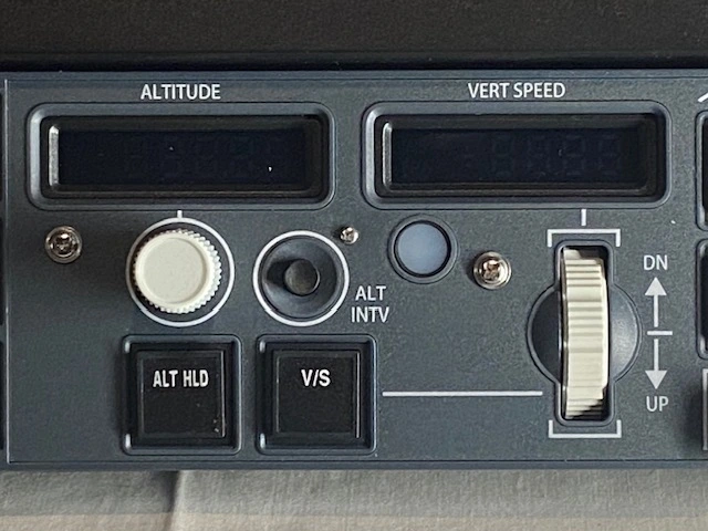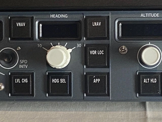 - Rotary Knobs for Airspeed, Heading, and Altitude (the heading knob also has an outer vertical knob to vary the degree of commanded bank angle between 10 and 30 degrees)