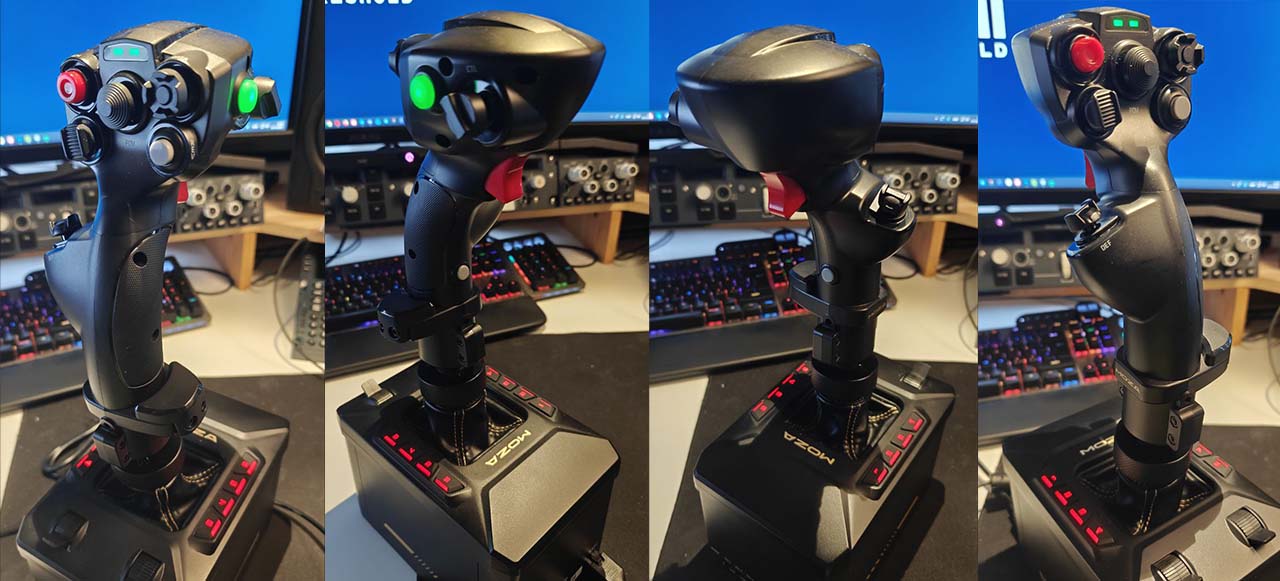 For reference, MOZA’s higher-end setup includes the AB9 FFB Base ($549 USD ), the premium MH16 Flightstick ($169 USD), and the optional Flight Base Table Clamp ($59 USD). We reviewved that setup here: Threshold Review: MOZA Flight Stick and Base